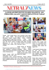 Nganjuk – Polres Nganjuk bekerja sama dengan Rumah Sakit Bhayangkara Nganjuk menggelar vaksinasi Hepatitis B tahap pertama bagi anggota Polri dan Polwan dengan target 189 personel. Kegiatan ini dilaksanakan di Aula Tantya Sudhirajati Polres Nganjuk, Selasa (7/4/2026).